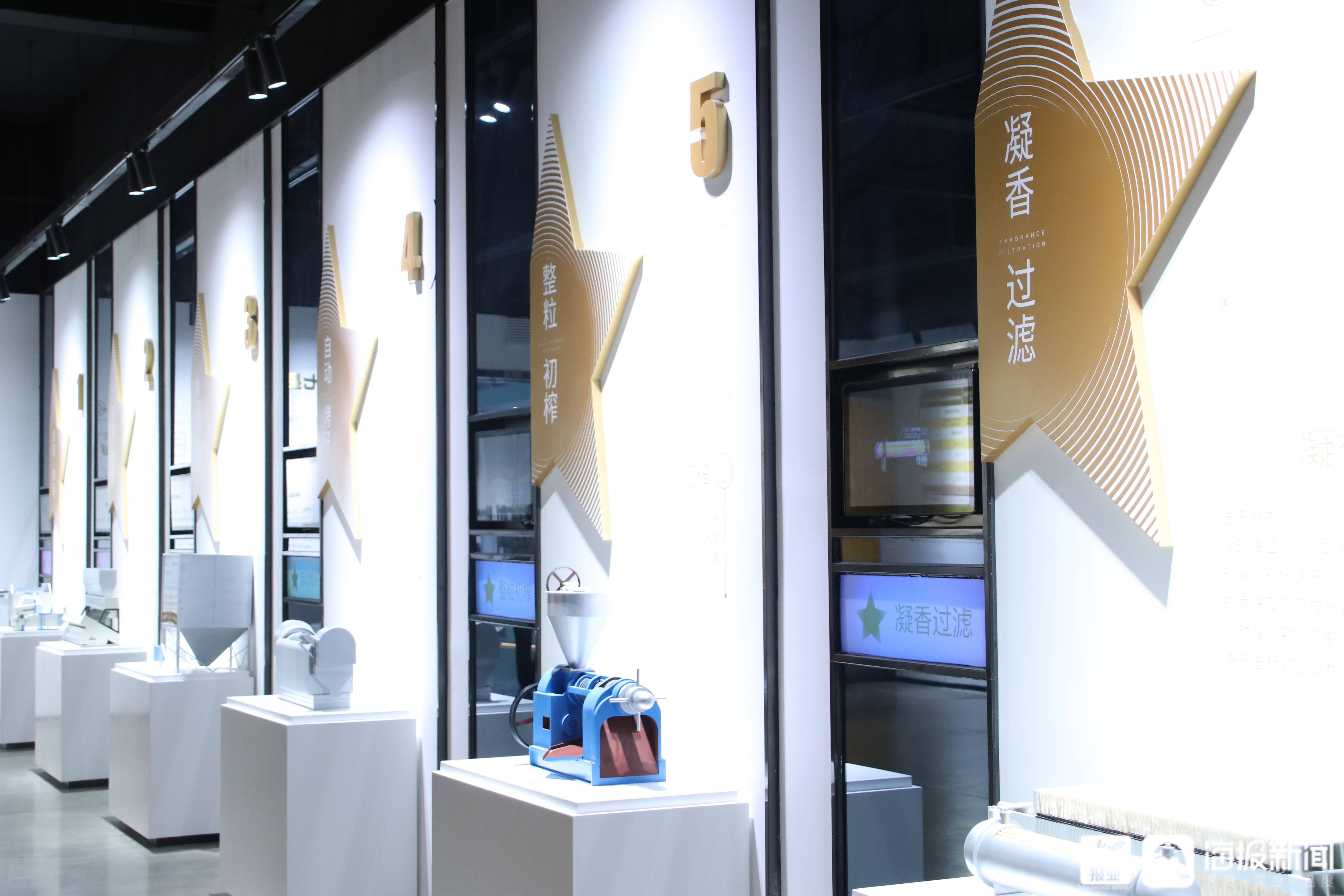 据介绍,在经过360度的自动恒温的烤炉后,花生将被整粒进行压榨。“从压榨机出来的花生原油一般在120度左右,为最大限度的保留花生中的营养成分、生理活性成分和特有的风味,我们利用换热器快速从120度降至40度,不仅提高了过滤效率,还提升了花生油的风味。”孙钦彩表示,为了保证有效的过滤杂质,保证油澄清透亮,过滤环节采用的滤布和植物纸密度极高,最小孔径仅有1微米,从而确保花生油杂质有效去除。